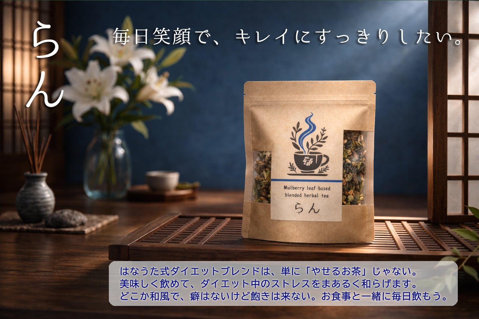 美味しく飲めるのは当たり前で、一番大事なのはダイエット中の心を支えてくれること。そんなハーブティーになりました。